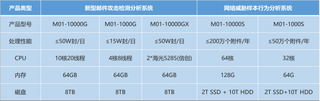 新型邮件攻击检测分析系统有千兆版、万兆版和信创版 网络威胁样本行为分析系统有千兆版和万兆版